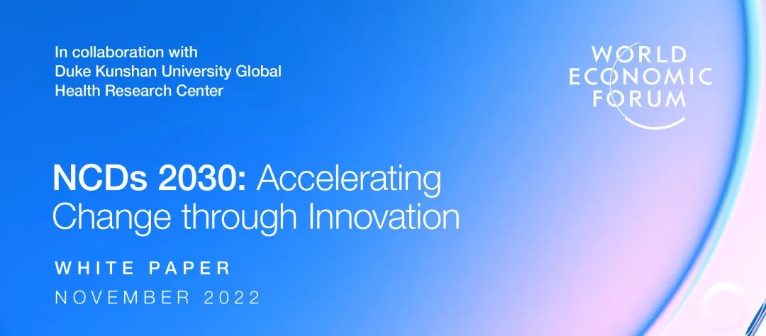 2022年11月15日,世界经济论坛与昆山杜克大学全球健康研究中心联合发布了题为《慢性非传染性疾病2030:以创新促改变 (NCDs 2030: Accelerating Change through Innovation)》的白皮书(以下简称白皮书)。