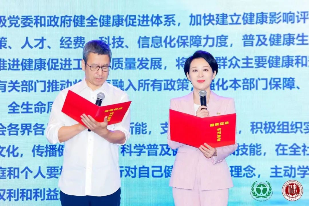 会议发布《健康促进杭州宣言》,提出要动员社会各界形成“同一世界、同一健康”共识,凝聚社会力量、提升专业力量、强化科技力量、动员志愿力量、激励个人力量,携手促进公众健康、共建美好家园。