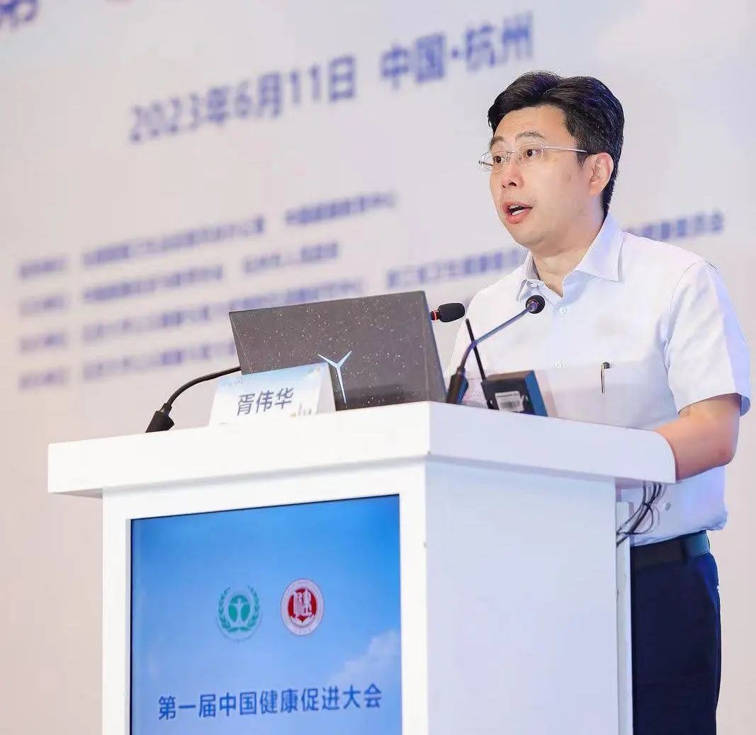 备受业界和社会关注的第一届中国健康促进大会6月11日在杭州市召开。全国人大常委会副委员长何维、中国农工民主党中央副主席邓蓉玲、国家卫生健康委副主任于学军、浙江省副省长李岩益、杭州市市长姚高员等领导出席会议并发表讲话。来自医药卫生界、体育界、教育界、科技界、大众传媒、NGO组织及企业的一批重量级嘉宾出席会议。上千名代表齐聚一堂,共商我国健康促进大计、共议公众健康维护大业。