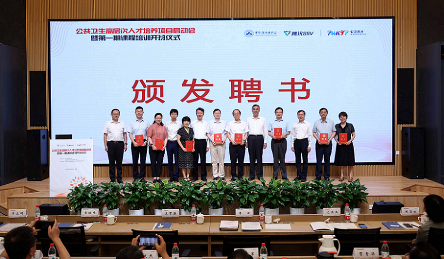 会上,国家卫生健康委副主任、中华预防医学会会长李斌,国家疾控局副局长、中华预防医学会副会长常继乐,中国工程院院士、国家疾控局副局长、中国疾控中心主任沈洪兵,腾讯可持续社会价值事业部副总裁赵国臣为公共卫生高层次人才培养项目进行了揭牌,并向与会的项目教学委员会专家颁发了聘书。