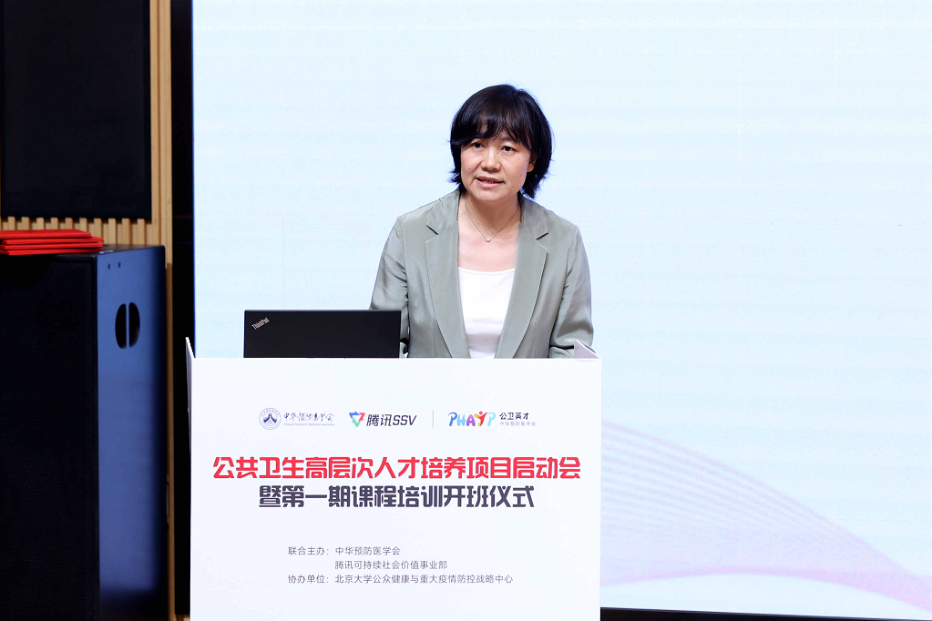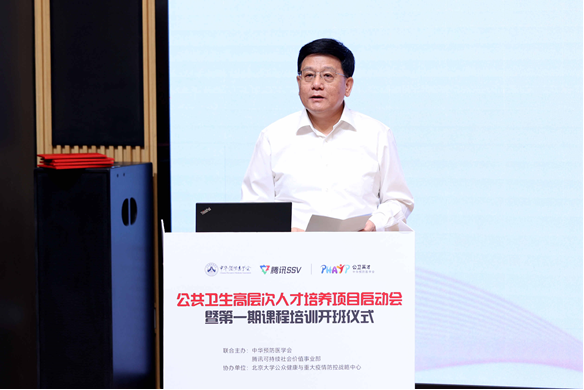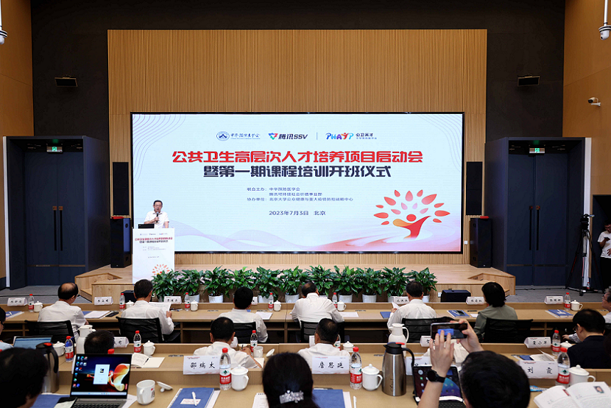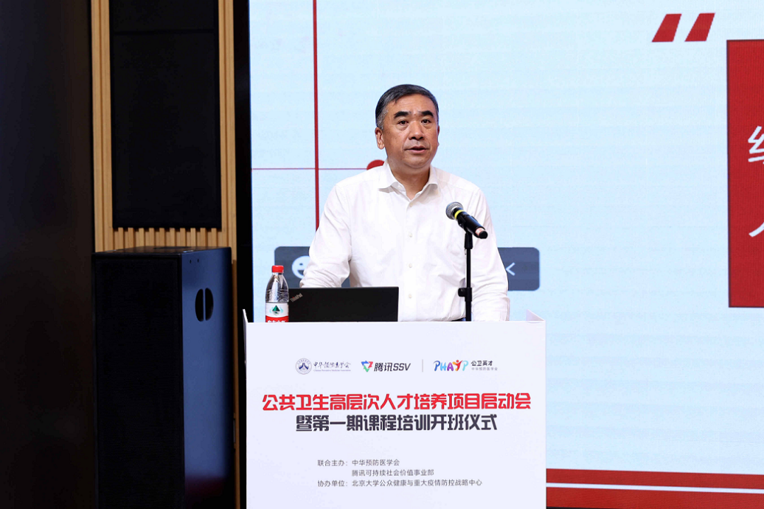 2023年7月3日,由中华预防医学会和腾讯可持续社会价值事业部联合主办、北京大学公众健康与重大疫情防控战略中心协办的公共卫生高层次人才培养项目启动会暨第一期课程培训在北京大学医学部如期召开。来自国家卫生健康委、国家疾控局、中国疾控中心、高等院校等单位领导、专家学者,以及来自国家和省级疾控中心等机构的第一期学员共计140多人参加了会议。会议由中华预防医学会副会长兼秘书长冯子健主持。