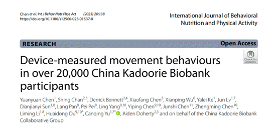 2023年11月24日,《International Journal of Behavioral Nutrition and Physical Activity》在线发表了CKB团队题为“Device-measured movement behaviours in over 20,000 China Kadoorie Biobank participants”的研究,该研究介绍了CKB第三次重复调查中20000余名研究对象运动手环项目总活动量及身体行为的分布情况。